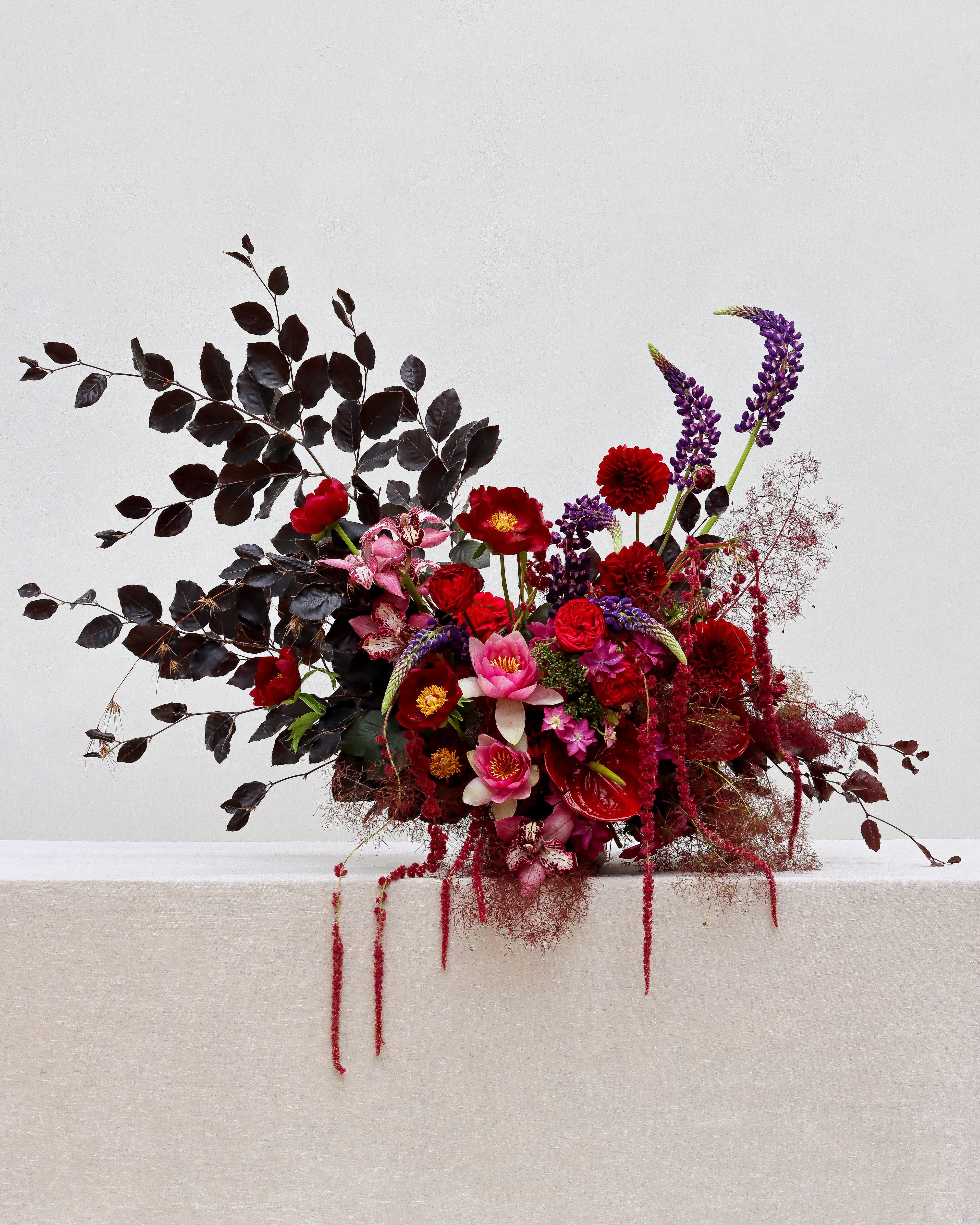 Each arrangement is made into a vessel for ease of transport, meaning after the ceremony they can be moved and repurposed to decorate your reception space for extra impact.